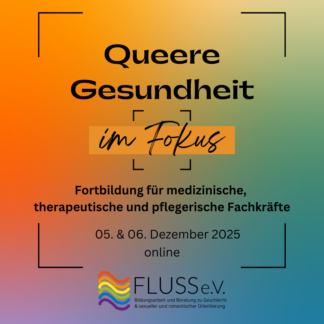An zwei Tagen sprechen wir im online Seminar über den Umgang mit dem Thema LSBTIAQ* im medizinische Alltag und über die Bedarfe von queeren Menschen in thereapeutischen und medizinischen Settings.